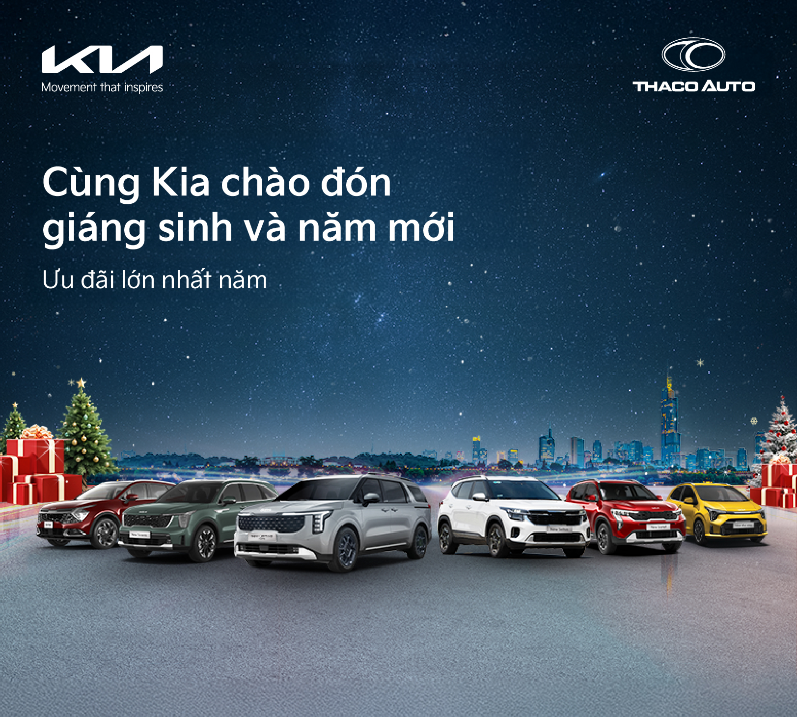 Kia chào đón tháng 12 mùa Giáng sinh và năm mới với ưu đãi cho nhiều mẫu xe cao nhất lên đến 90 triệu đồng, giới thiệu nhiều phiên bản mới và tùy chọn cá nhân hóa cho các mẫu xe cao cấp